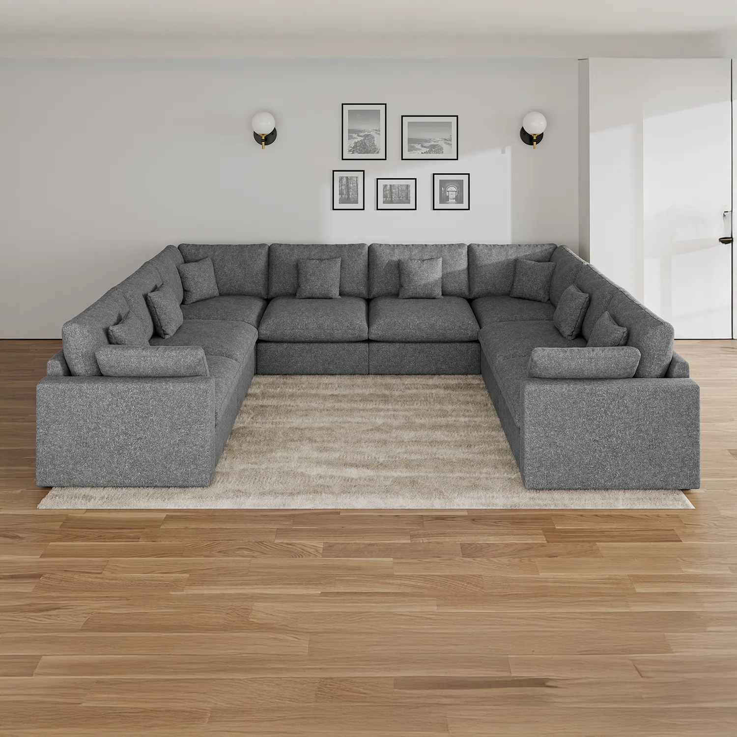 Le sofa CLOŪD à 8 places panoramique est un sofa au design contemporain et aux volumes généreux. Son allure enveloppante et son coloris gris foncé apportent une touche chaleureuse à l’espace, pour un rendu accueillant, actuel et facile à intégrer.