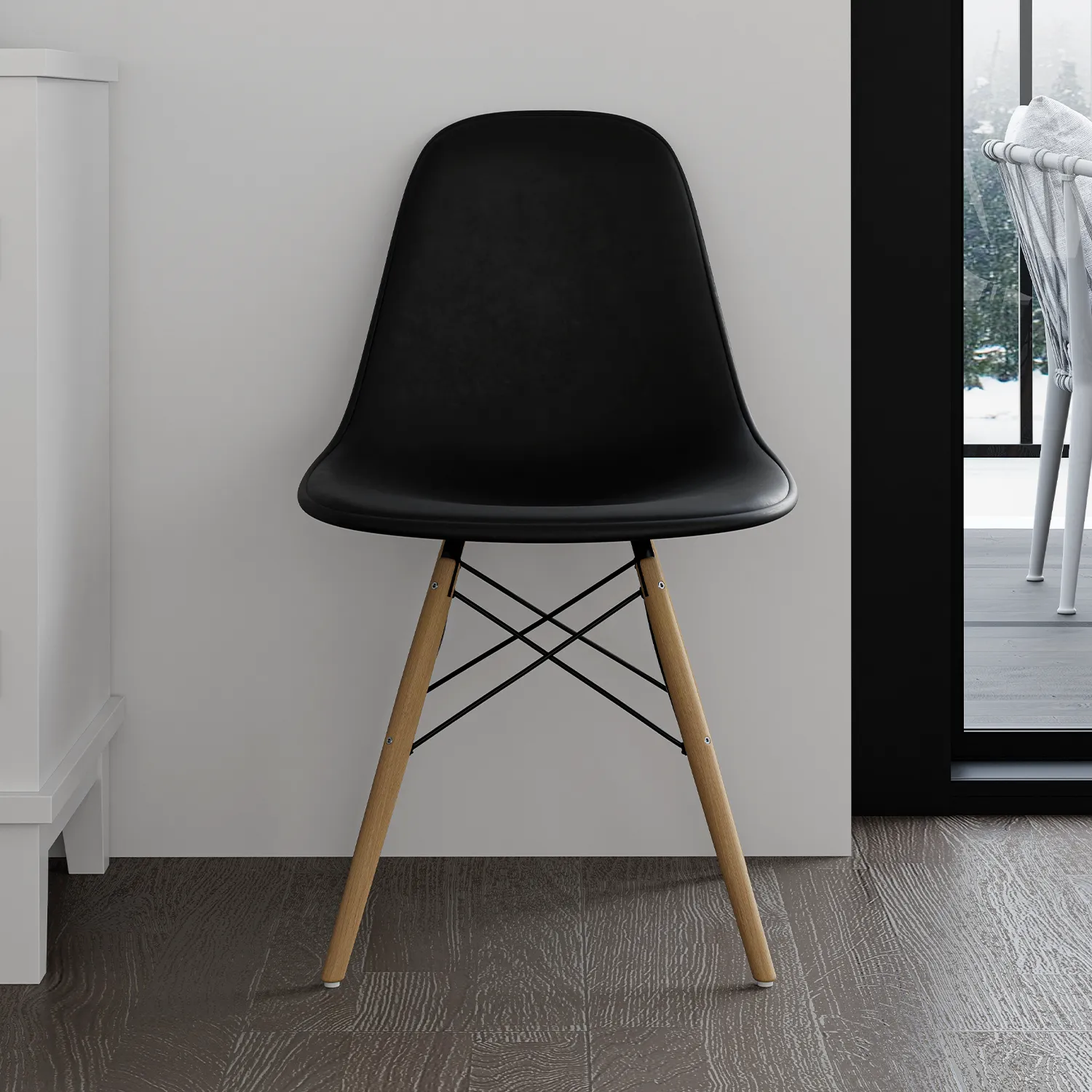 Adoptez un design intemporel avec la chaise EIFFEL. Son assise noire ergonomique offre confort et modernité, tandis que ses pieds en bois naturel et ses croisillons métalliques ajoutent une touche élégante et robuste. Idéale pour sublimer votre salle à manger.