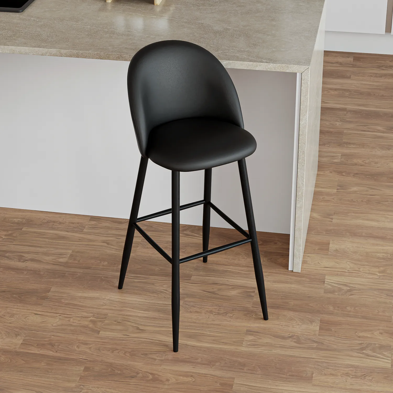 Ajoutez une touche moderne à votre cuisine avec le tabouret de bar ŌCEA. Fini noir mat, dossier arrondi et siège ergonomique pour un confort quotidien. Parfait pour comptoir, îlot ou bar. Structure en métal robuste et repose-pieds intégré. Design contemporain et durable.